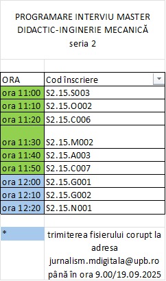 ADMITERE MASTER DIDACTIC ÎN INGINERIE SI MANAGEMENT SEPTEMBRIE 2025